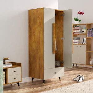 With a space-saving yet roomy design, this engineered wood wardrobe is the perfect addition to your home, combining elegance, practicality, and durability for seamless organization.